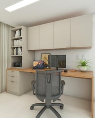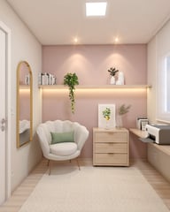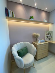 Esse ambiente, na capital paulista, foi especialmente pensado para uma nutricionista especializada em atendimento de mulheres na menopausa. O principal pedido da cliente é que fosse um espaço elegante, leve e tivesse um ar de feminilidade.