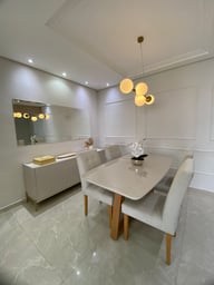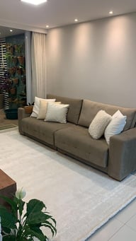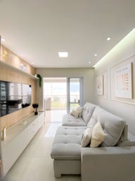 Quem disse que para ser minimalista precisa ser sem graça, estava totalmente enganado. Nesse apartamento em Vitória (ES), transformamos essa sala de estar e jantar em um espaço sofisticado e acolhedor, utilizando paleta de tons neutros e pouca informação visual, como pedido pelos nossos clientes.