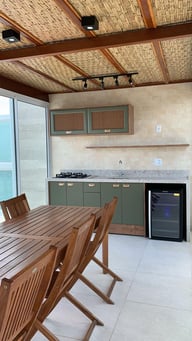 Espaço projetado especialmente para um casal jovem na cobertura de um apartamento à beira mar, em João Pessoa (PB). O objetivo era receber a família aos fins de semana em um espaço gourmet e ter um espaço reservado também para um Home Office.